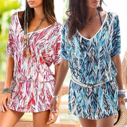 Finished with short sleeve and v-neck design,this dress can offer you a comfortable day with its soft and