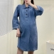 Fashion Short Sleeve V-neck Denim Dress for Pregnant Women
