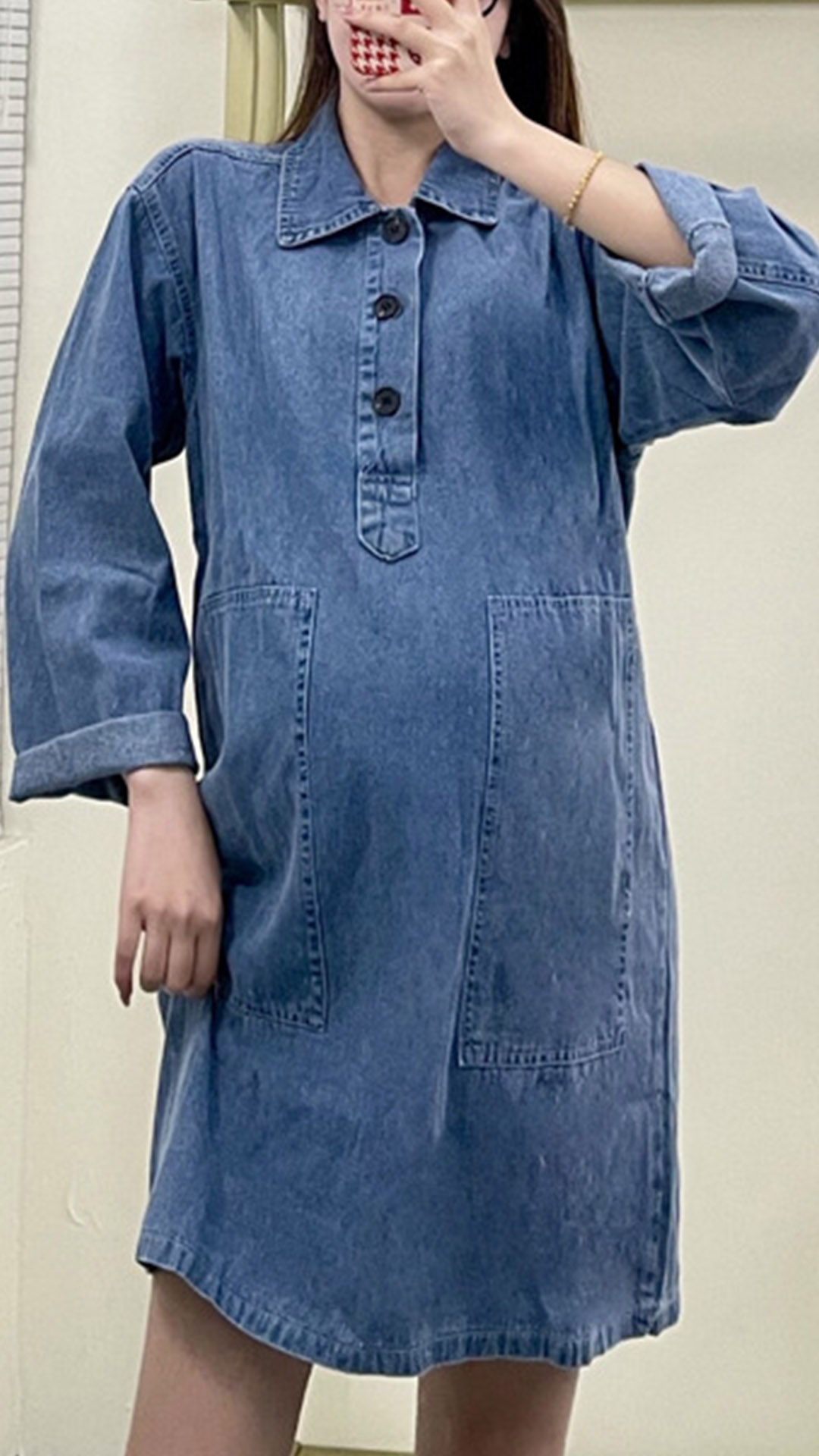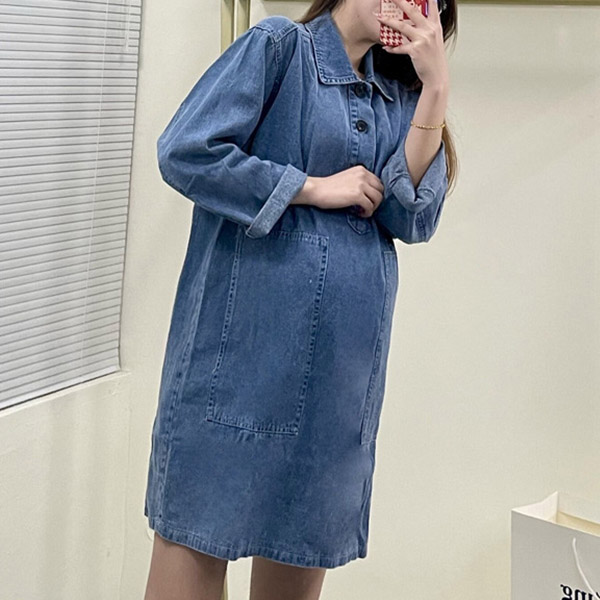 This denim dress is a good chance for these pregnant women to express their stylish taste.