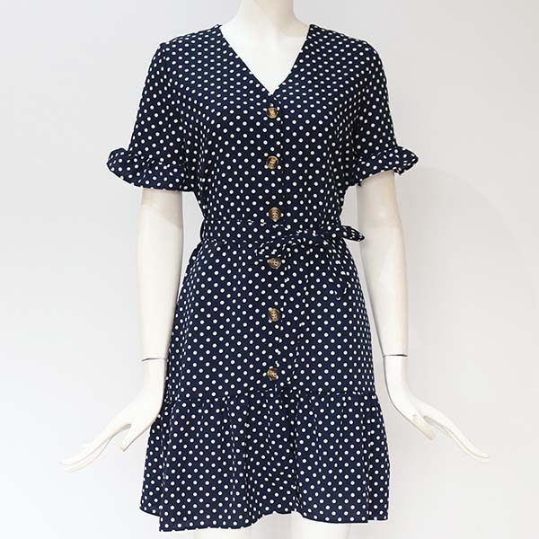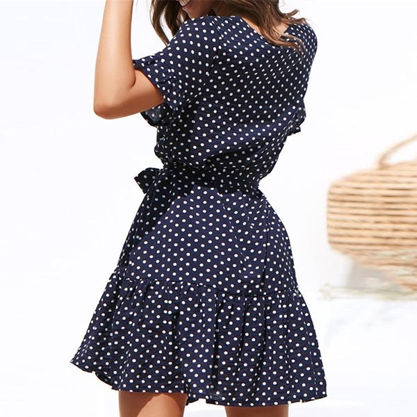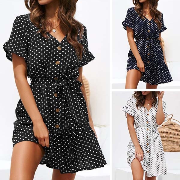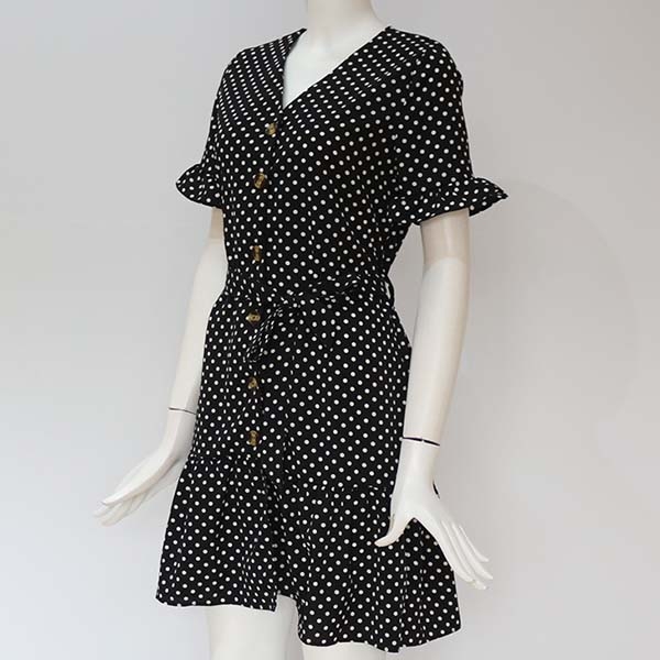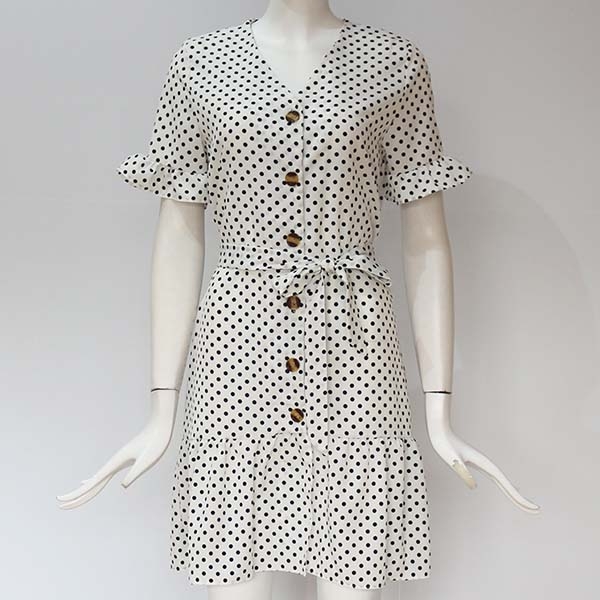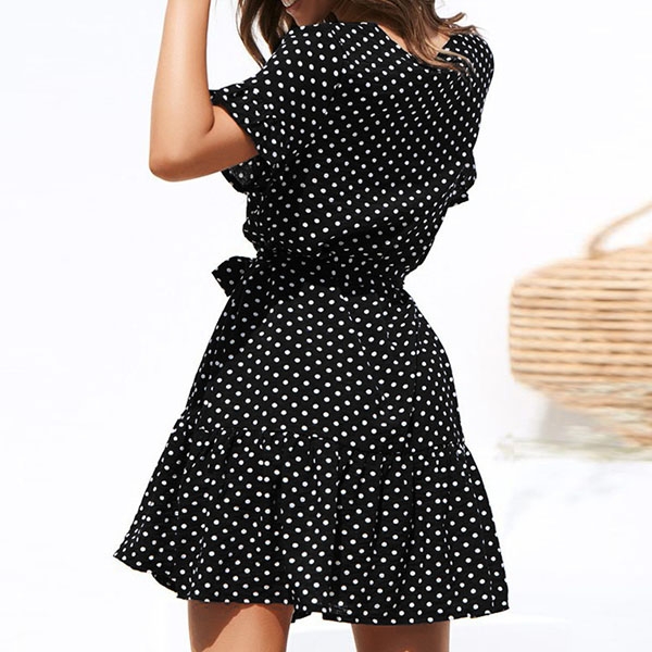 The dots printed design will give you a more eye-catching and playful look. Finished with short sleeve and