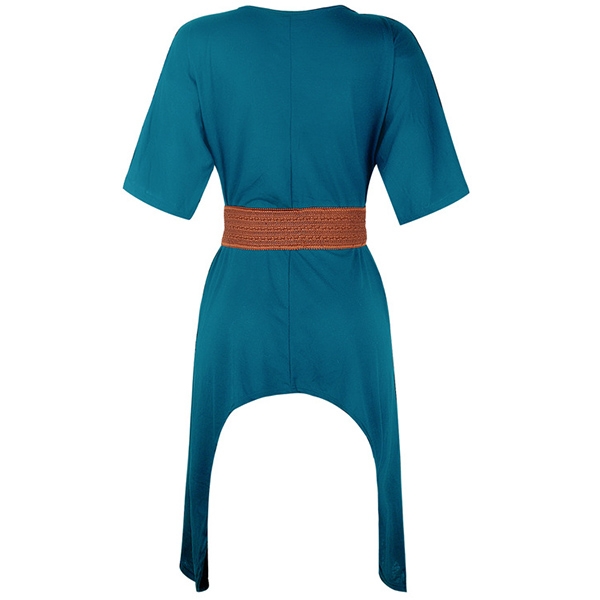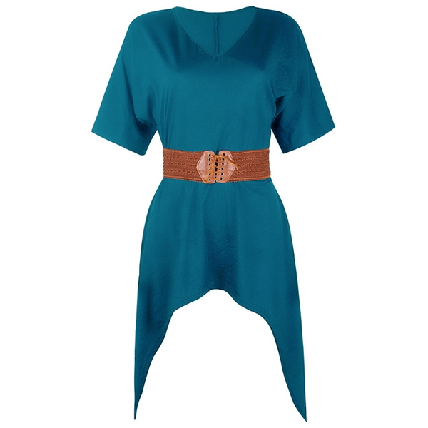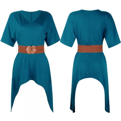 It is styled with solid color,short sleeve,v-neck and an irregular hem,chic and unique. Moreover,the waistband