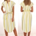 Striped style,finished with short sleeve,v-neck and an irregular hem,this dress definitely knows