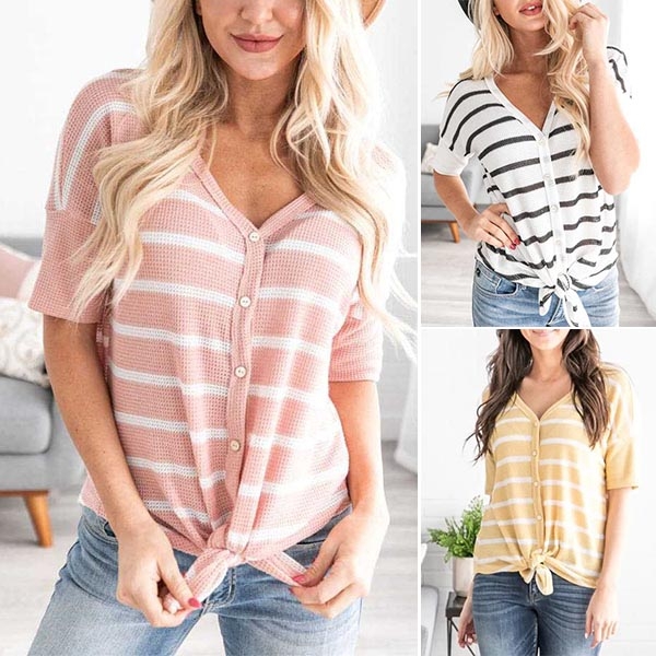 fabric will ensure you a comfortable day,while the v-neck and knotted hem design boost its charm.