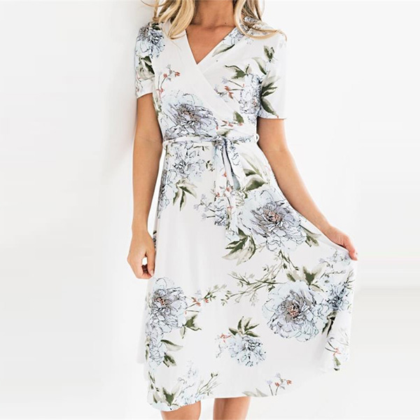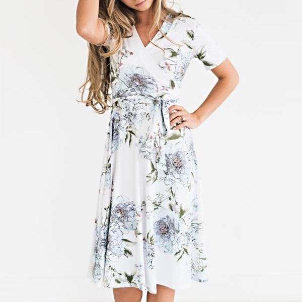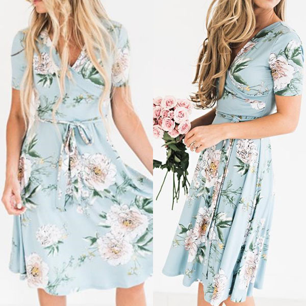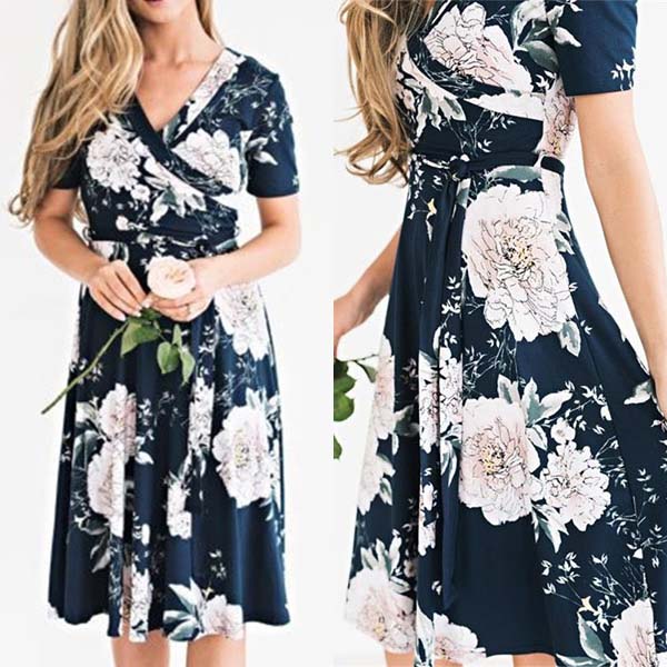 It is styled with vibrant floral print,with short sleeve and v-neck design,this dress can give you a