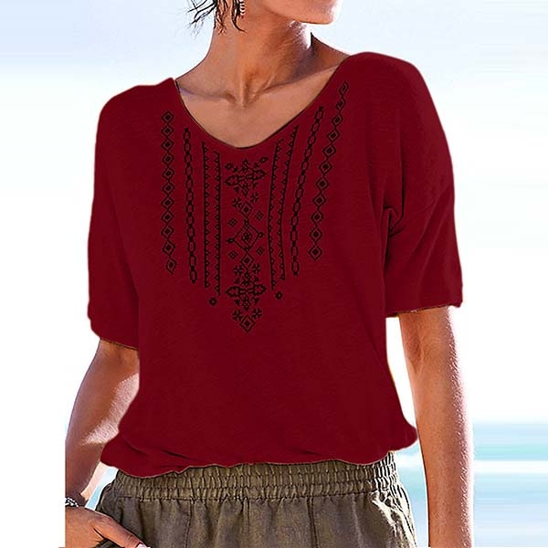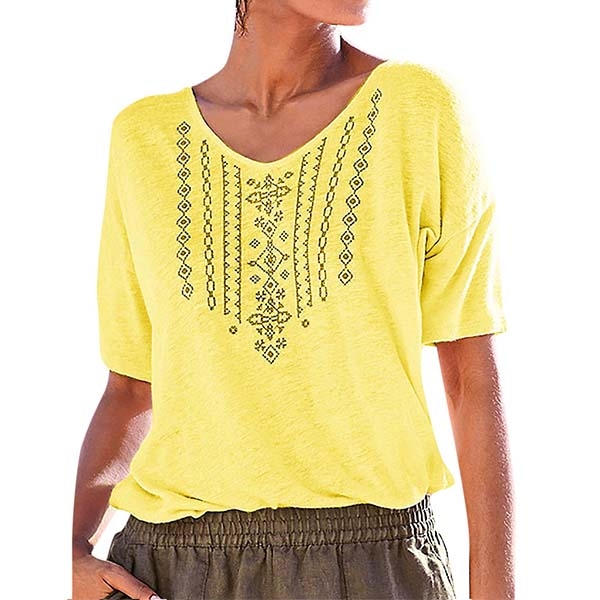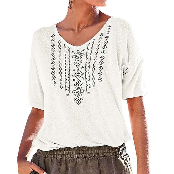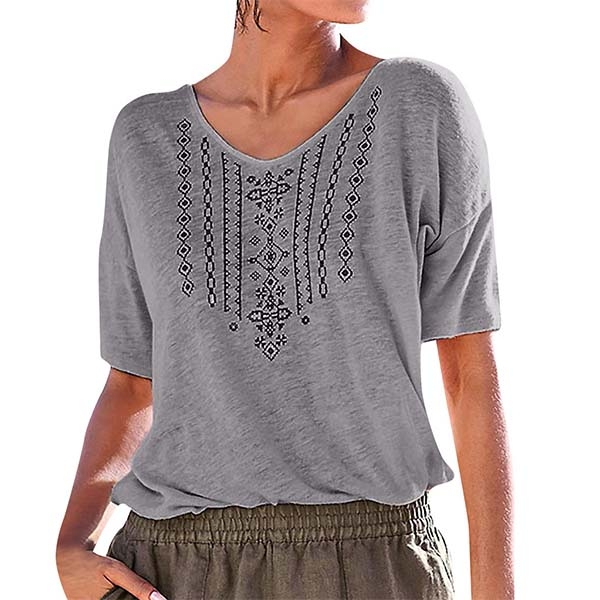 breathable fabric,with short sleeve,v-neck and a loose silhouette,this piece can promise you an