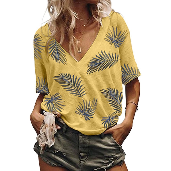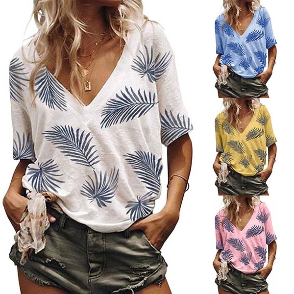 breathable fabric,with short sleeve,v-neck and chic printed details,this piece can