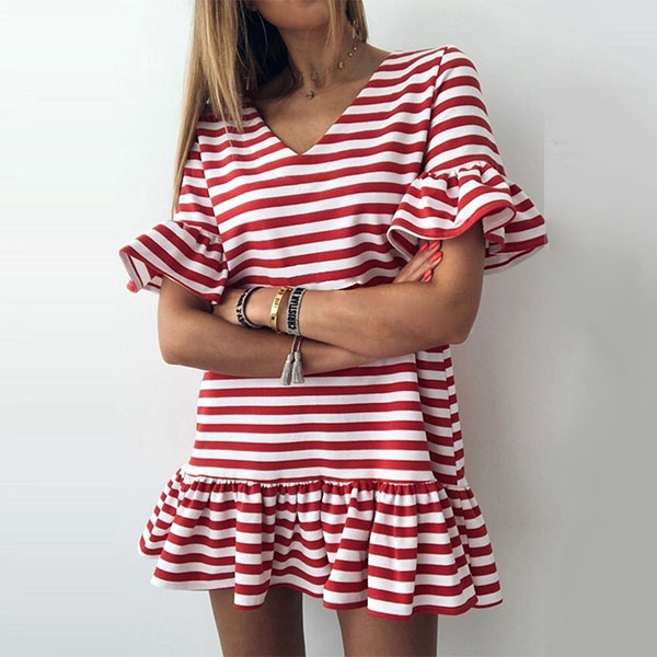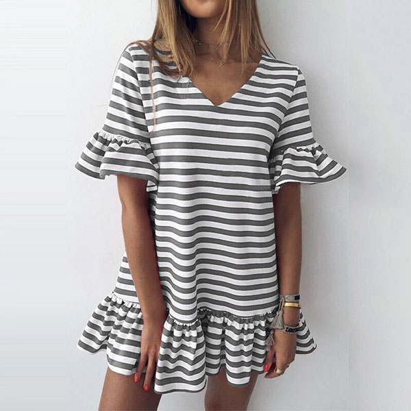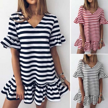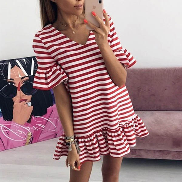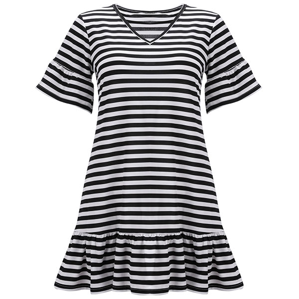 on this dress. Designed with striped element,stylish and popular. Finished with short sleeve,