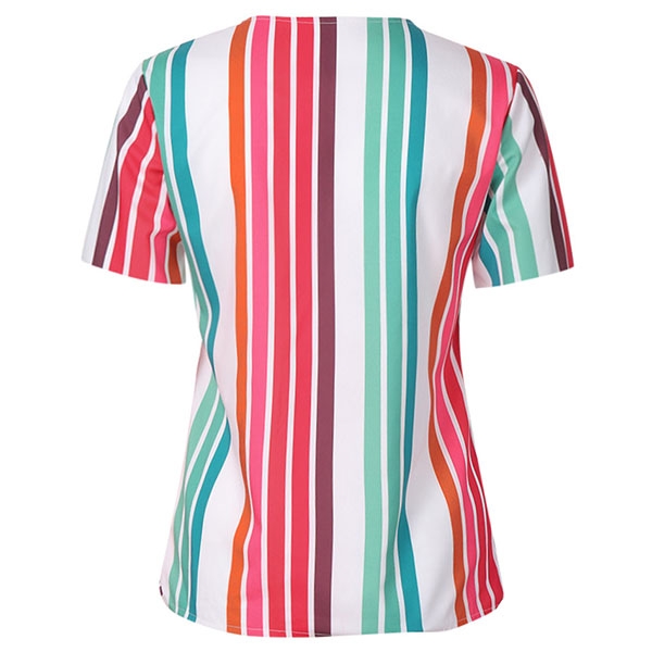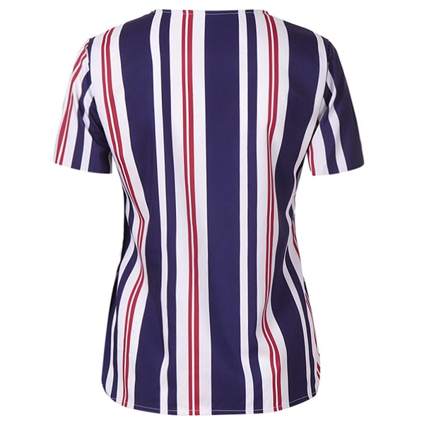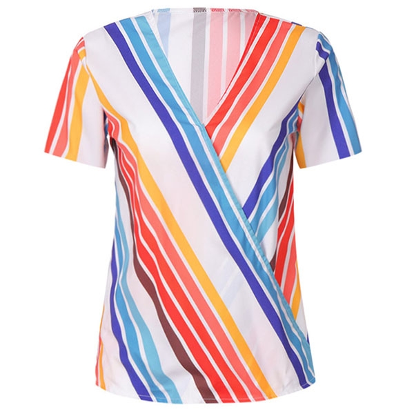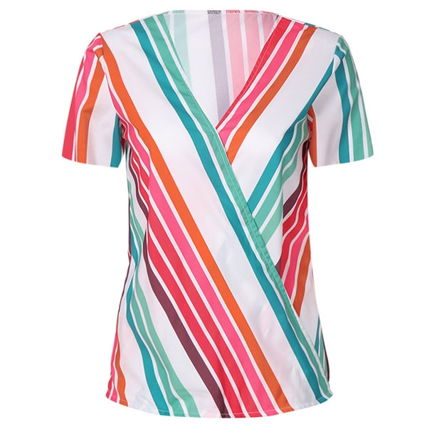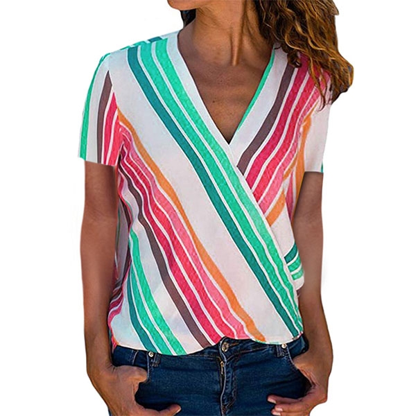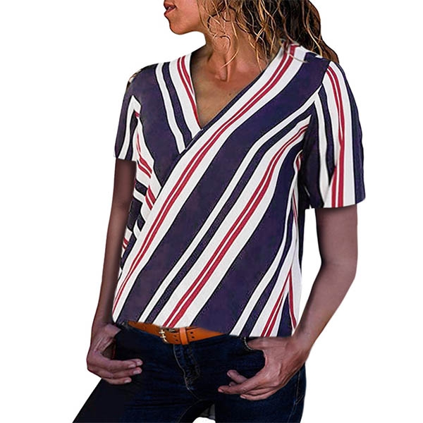 this striped blouse? It is outfitted with short sleeve and v-neck design,this piece can promise you