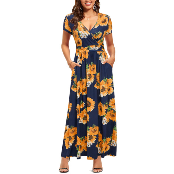 The sunflower printed pattern design will offer you a more eye-catching look,and the v-neck design can