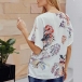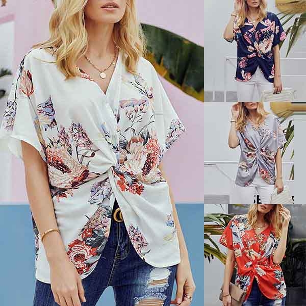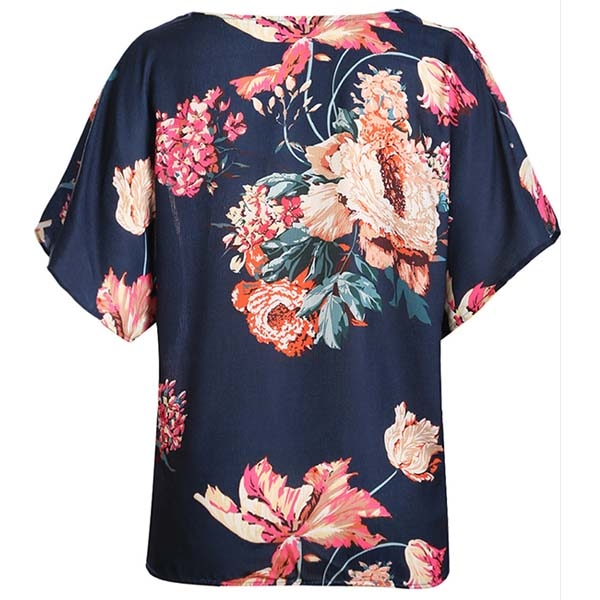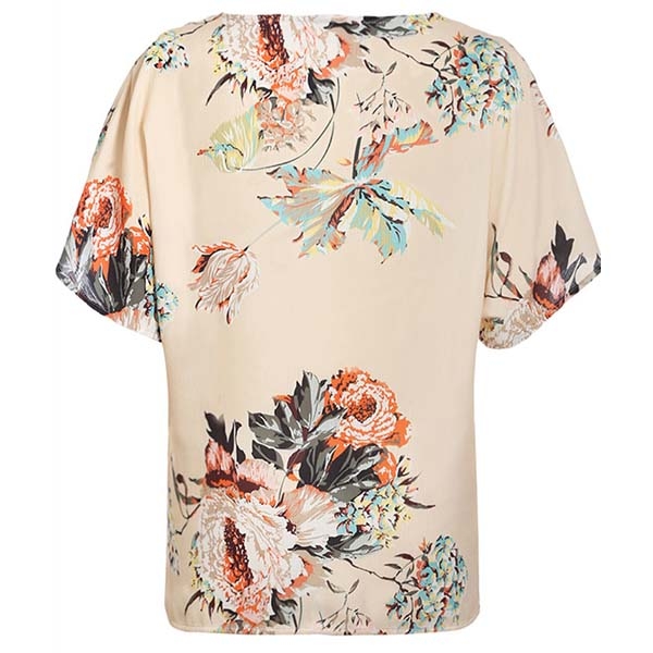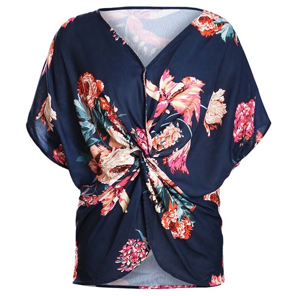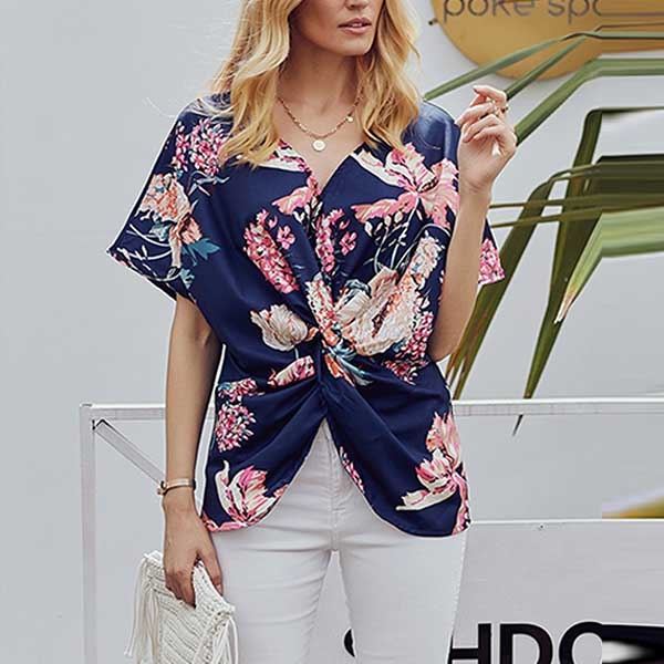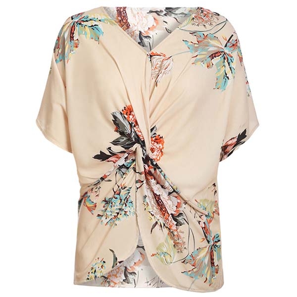 tryckta detaljer, v-ringningen och den vridna designen på framsidan gör att denna pjäs ser distinkt ut.