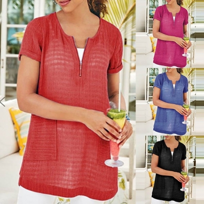 the zipper v-neck and front-pocket design make this piece look so attractive and chic.