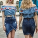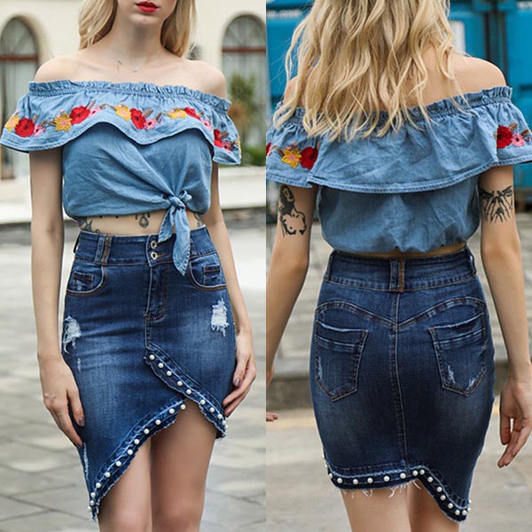 This is a stylish and cool short denim skirt.It crafted with high quality and durable material woven,