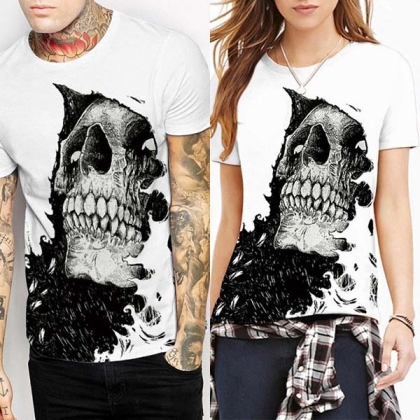 Designed with skull printed pattern,chic and eye-catching. Finished with short sleeve,round neck,