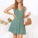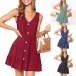 It boasts a solid color,the v-neck and front-button design make this piece look more attractive.