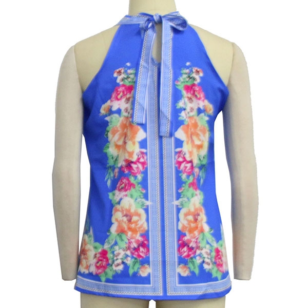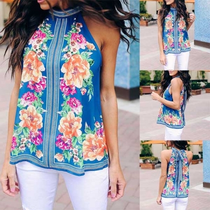 Fashion Sleeveless Lace-up Bowknot Printed Top
