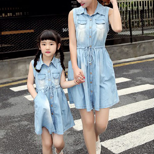 When walking on the street with your daughter with this denim parent-child dress,a beautiful landscape