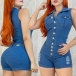 In these summer days,dresses is not the only choice,this denim romper also can easily strike your mind. It is finished with sleeveless and POLO collar design,the high waist and fit silhouette design can showcase your slender figure. Upgrade your style with this little item.