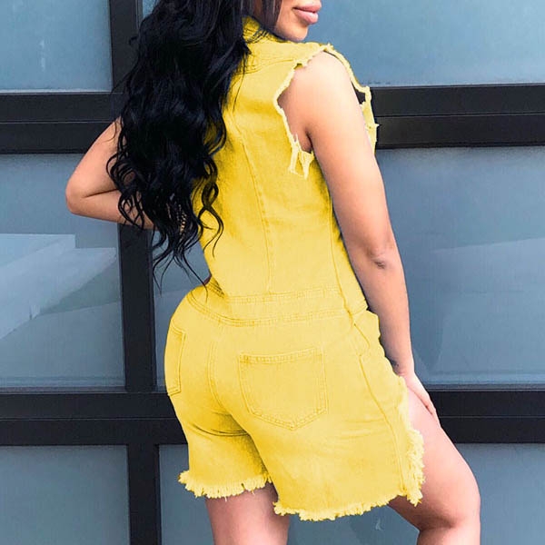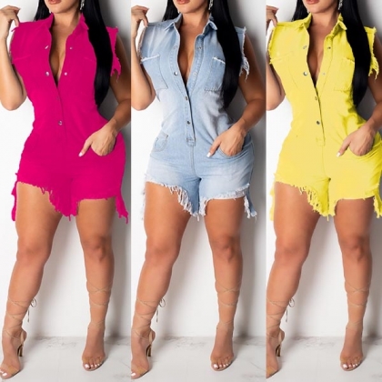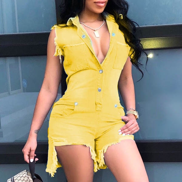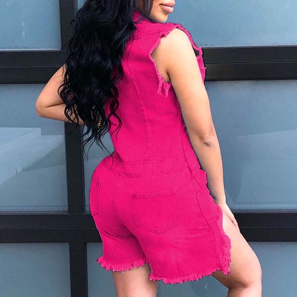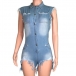 When you wanna update your daily style,you can just slip into this denim romper. It is outfitted