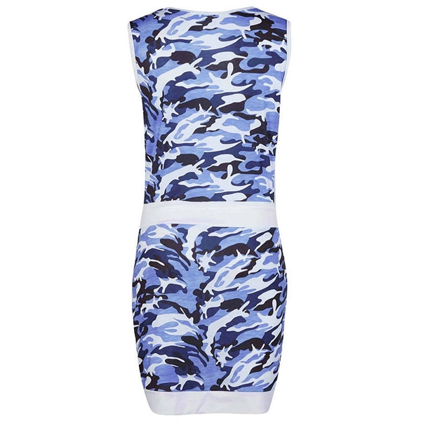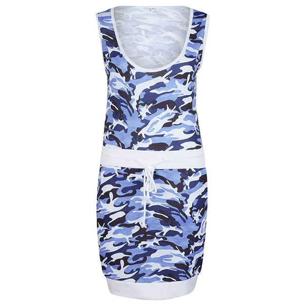 Denna klänningen är designadmed ett kamouflageprint vilket ger den en utstickande look. Dess ärmlösa ochurringade design gör den perfekt för dagar där solen skiner.
