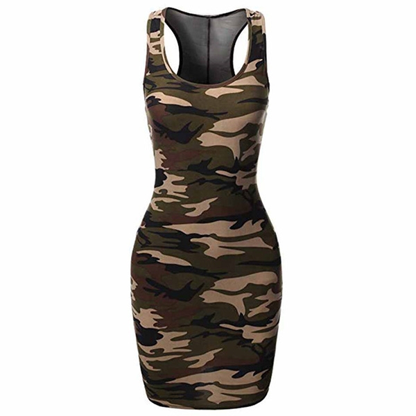 dress can portray your slender figure. Moreover,the camouflage printed details can make