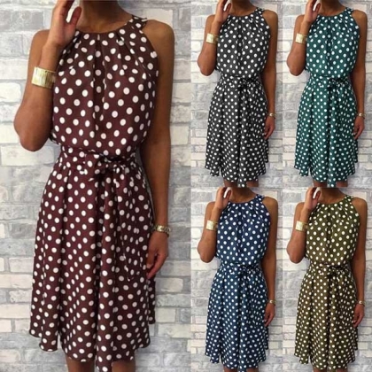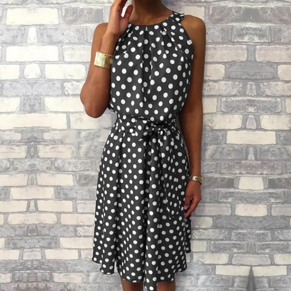 Greet the summer days with this beautiful dress. The dots printed details make it look so playful and eye-catching.