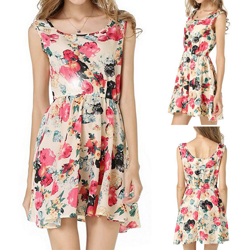 companion. Boasting a sweet and romantic floral print,with sleeveless and round neck design,