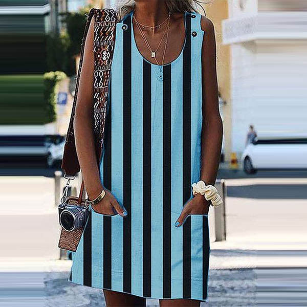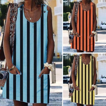 The striped element design makes this piece look so stylish and popular. Finished with sleeveless,