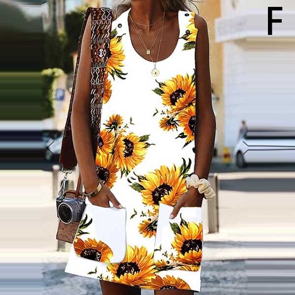 with sleeveless,round neck and a loose silhouette,this dress is sure to offer you a comfortable day.
