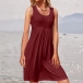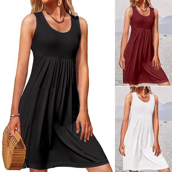For these warm-weather days,this sleeveless dress would be a good choice. Solid color style,finished with sleeveless,round neck,high waist and lace spliced design,this dress not only can give you a cool and comfortable day,but also can offer you a stylish look.