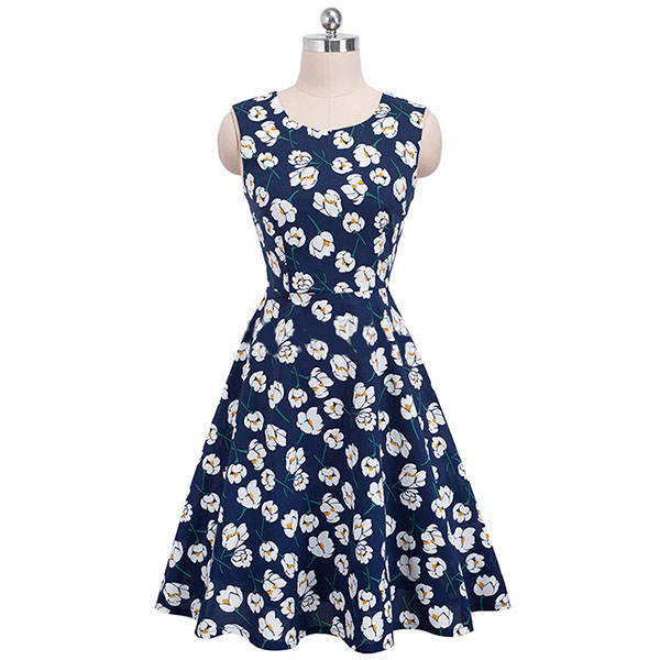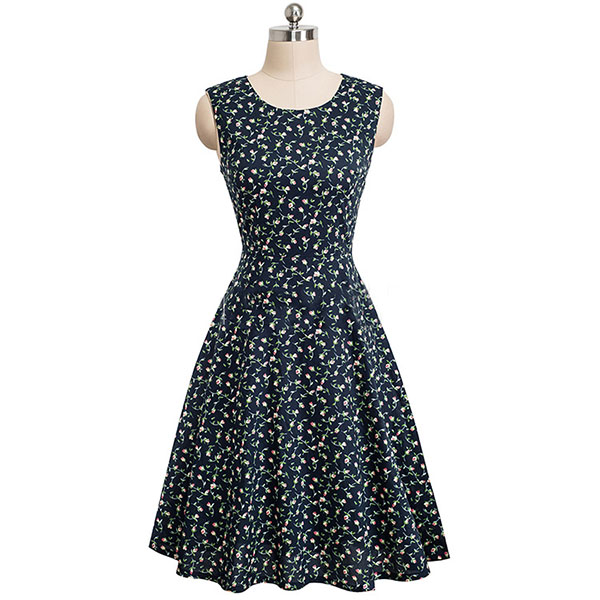 Bloom your beauty with this delicate dress! Boasts vibrant floral print,with sleeveless,round neck,high waist