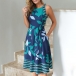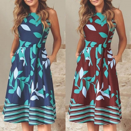 Fashion Sleeveless Round Neck High Waist Printed A-line Dress