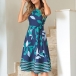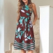 with chic and eye-catching printed pattern,with sleeveless,round neck,high waist and an A-line silhouette,