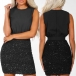 round neck and high waist design,this dress can display your slender figure. And the sequin spliced design will