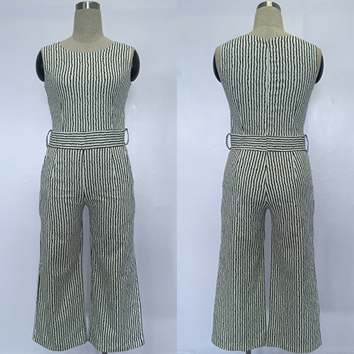 Striped style,with sleeveless,round neck and high waist design,this jumpsuit is sure to give you a