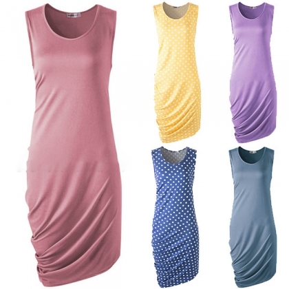 Crafted from soft and breathable fabric,with sleeveless,round neck and an irregular hem design,