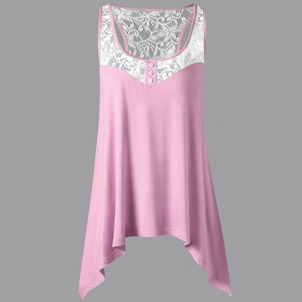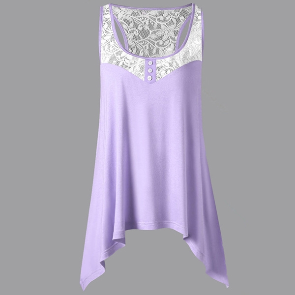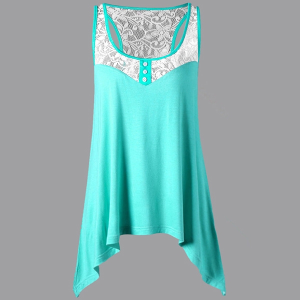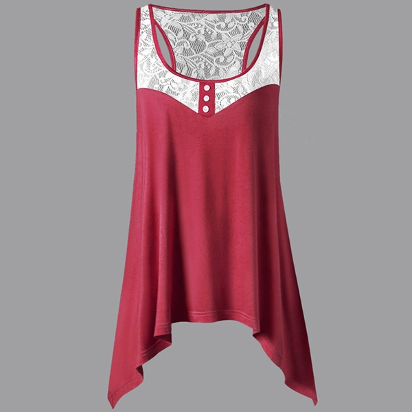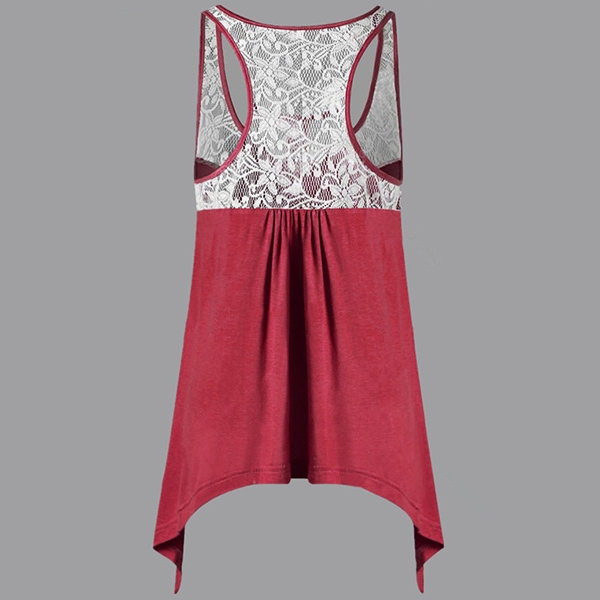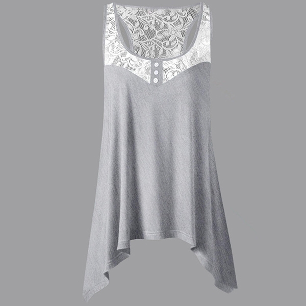 The lace spliced and irregular hem design make this piece look so attractive and distinctive.