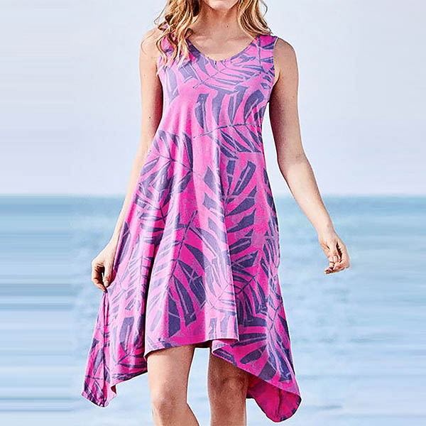 Fashion Sleeveless Round Neck Irregular Hem Printed Dress