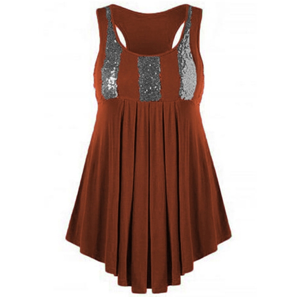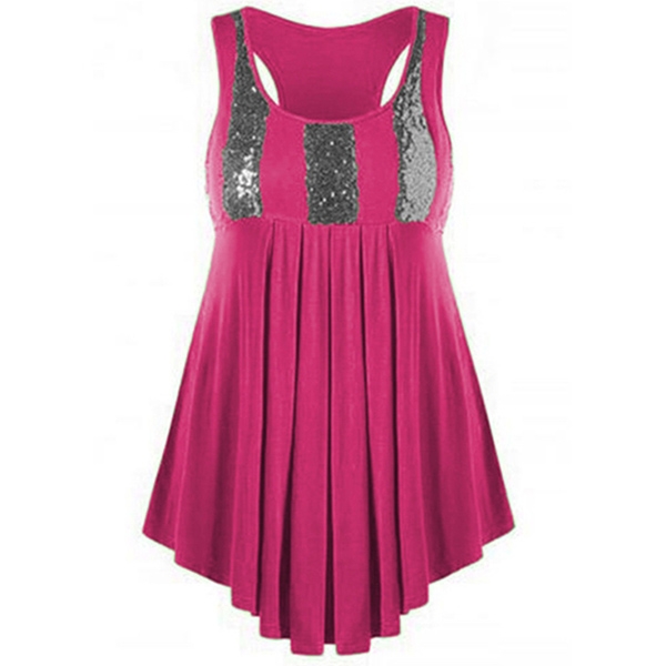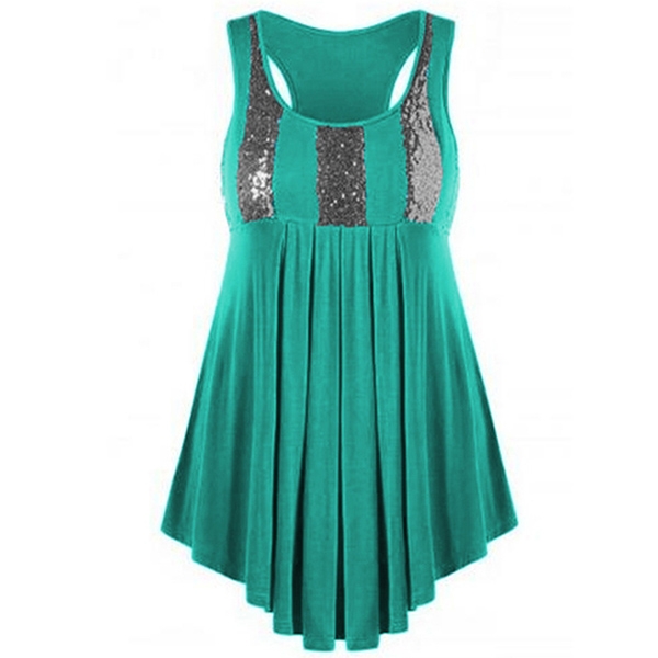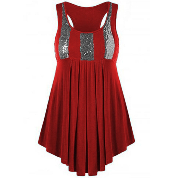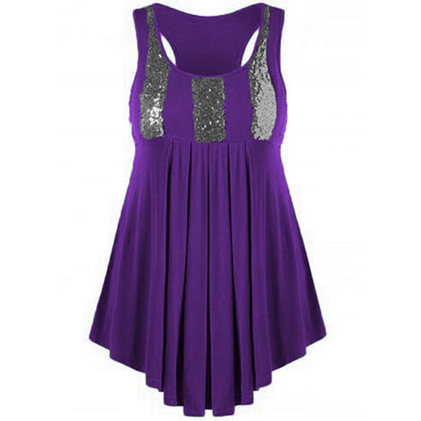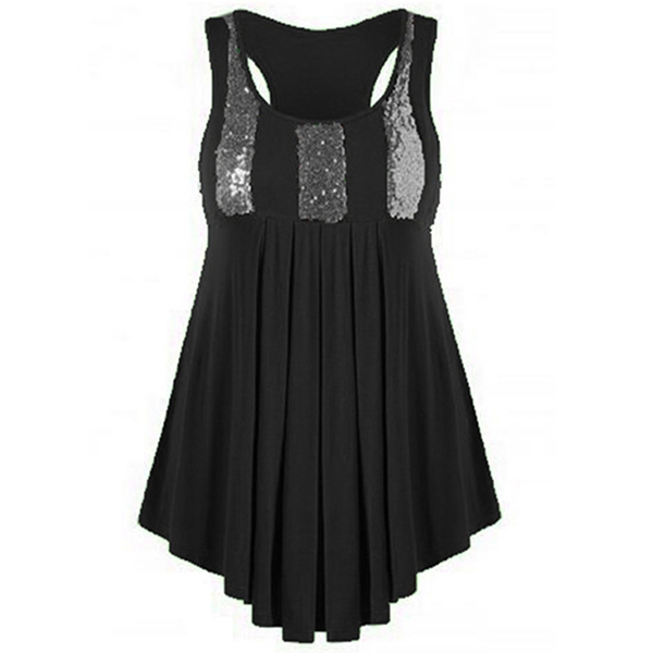 It features a simple design style,but the irregular hem and sequin spliced details will help enhance the