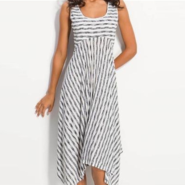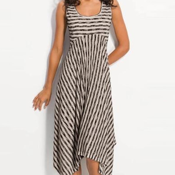 this exquisite dress! The striped element design makes it look stylish and popular. FInishd with sleeveless,