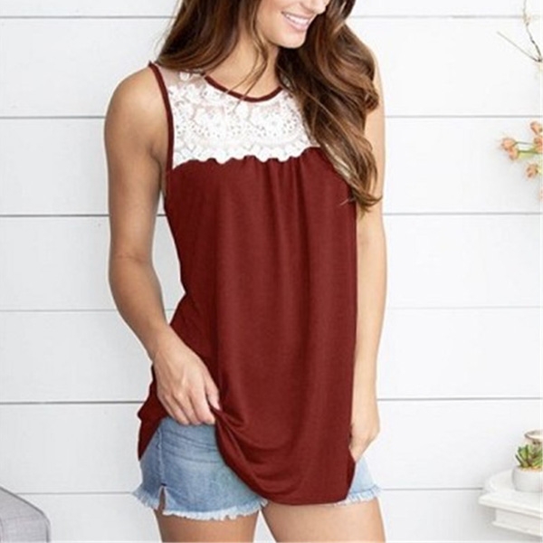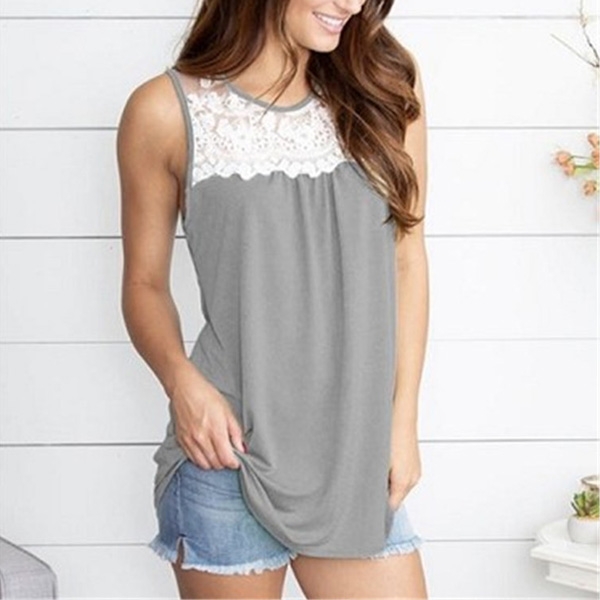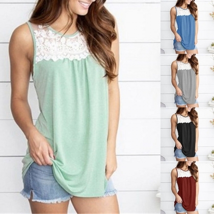 sleeveless,round neck design,and the lace spliced design will further enhance its charm.