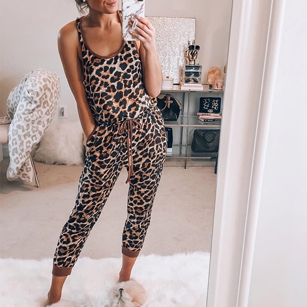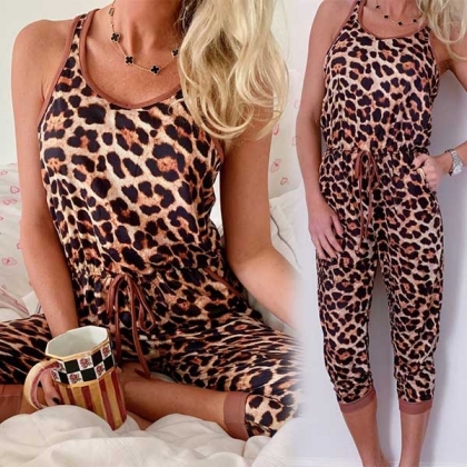 The leopard print details makes it look so eye-catching. Finished with sleeveless,round neck and high waist design,