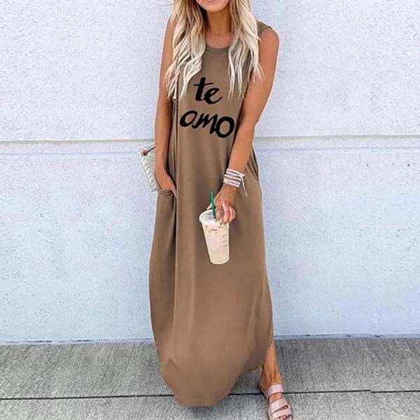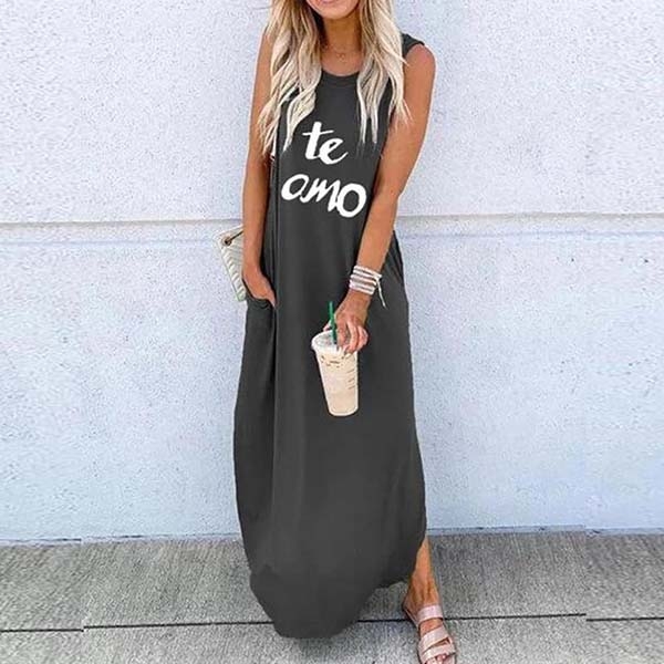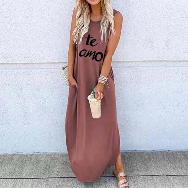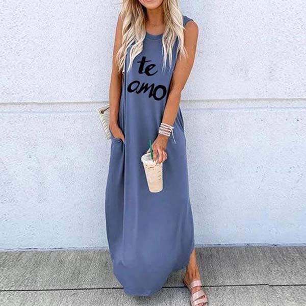 Finished with sleeveless,round neck and a maxi length,this dress can offer you a comfortable