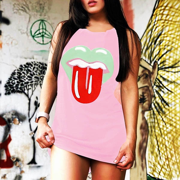 Denna klänning är tillverkad av mjukt och andningsbart tyg, med ärmlös, rund hals och en passform siluettdesign,