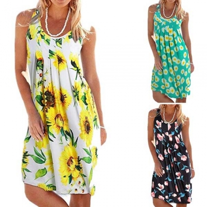 iögonfallande tryckta detaljer, med ärmlös, rund hals och en lös siluett, denna vackra