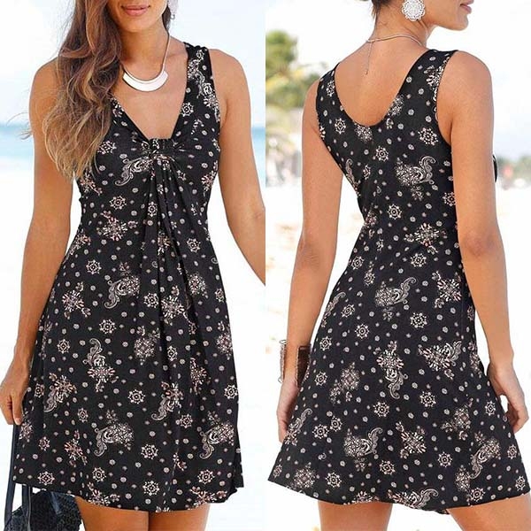 eye-catching printed details,with sleeveless and round neck design,this dress can give you