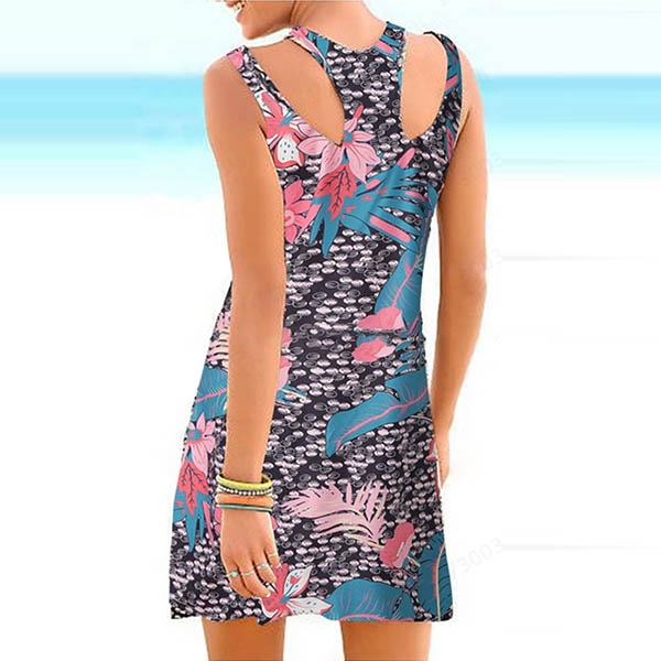 eye-catching printed details,with sleeveless and round neck design,this dress can ensure you a
