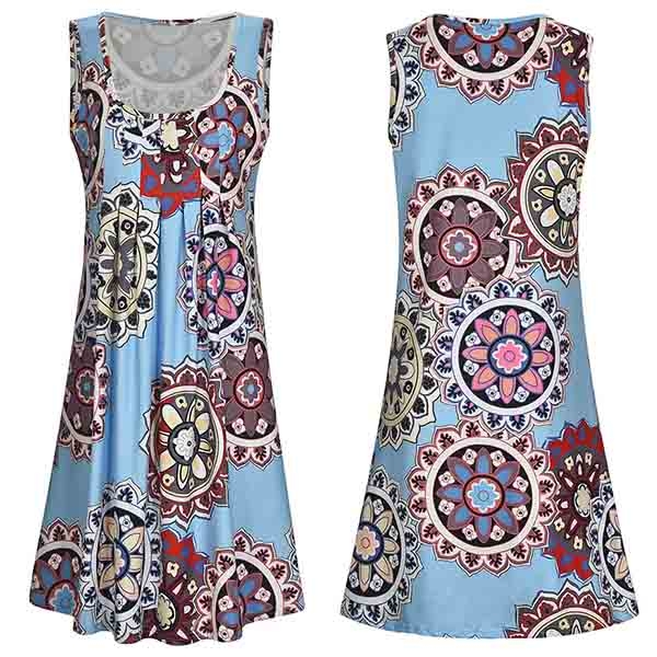Features chic and eye-catching printed details,with sleeveless and round neck design,