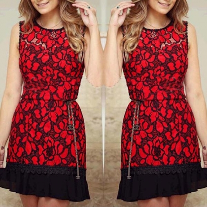 your eyes focused on this dress. The eye-catching printed lace details and ruffle hem design will give you