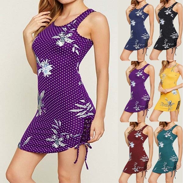 highlight your seductive curve. Finished with sleeveless,round neck and side lace-up design,