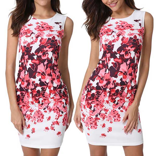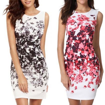 Boasts chic printed pattern,with sleeveless,round neck and a fit silhouette,this dress also can showcase